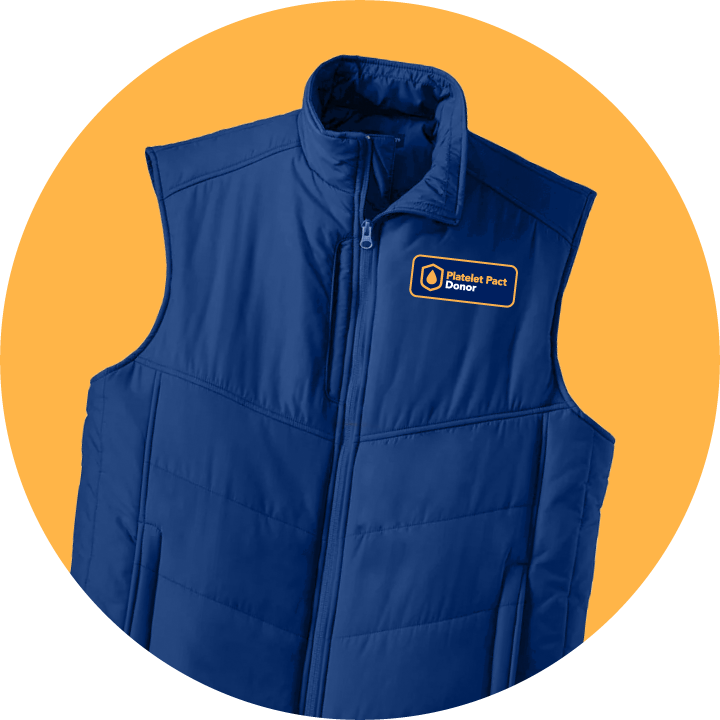 - You will receive your choice of a premium puffer vest or a $40 eGift card if you present to donate platelets a total of two times during the campaign period. Following that, you will receive: