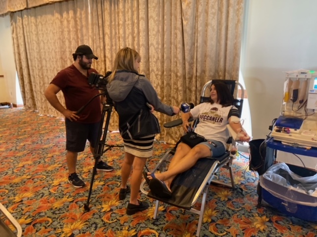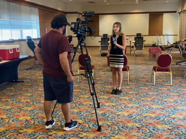 Krissy says she’ll keep that in mind for the next time. In the meantime, she interviewed Communcations Specialist Tony Prado and double red cell donor Erin Pieshala.