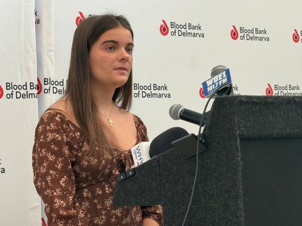 Peyton Harter, an 18-year-old freshman at the University of Delaware, told the dramatic story of how she received prehospital blood from both New Castle County Paramedics and the Delaware State Police Section at the scene of a bad car accident in April 2025.