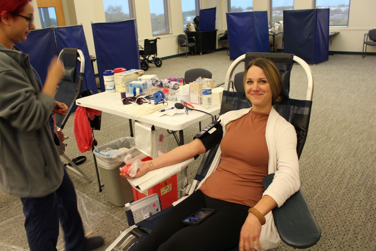 Shana Reed, an administrative coordinator with Kent County, put things into perspective as she donated blood conveniently at work.