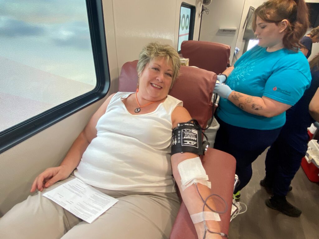 “I told them how great this place is,” she said. “I’ve come here for years. I love Fins too. I’m O negative, and they call me all the time. I try to give every 56, 60 days.”