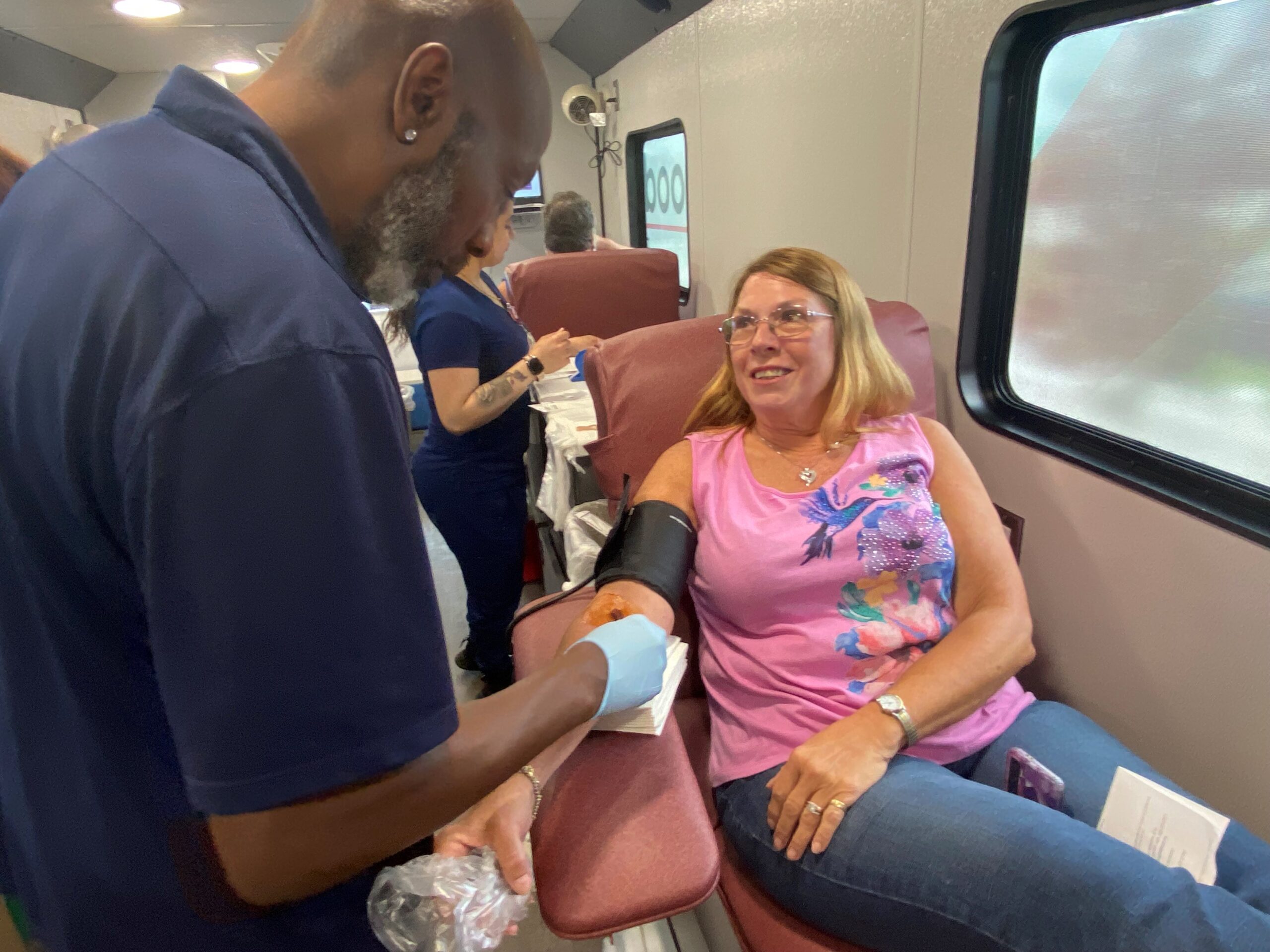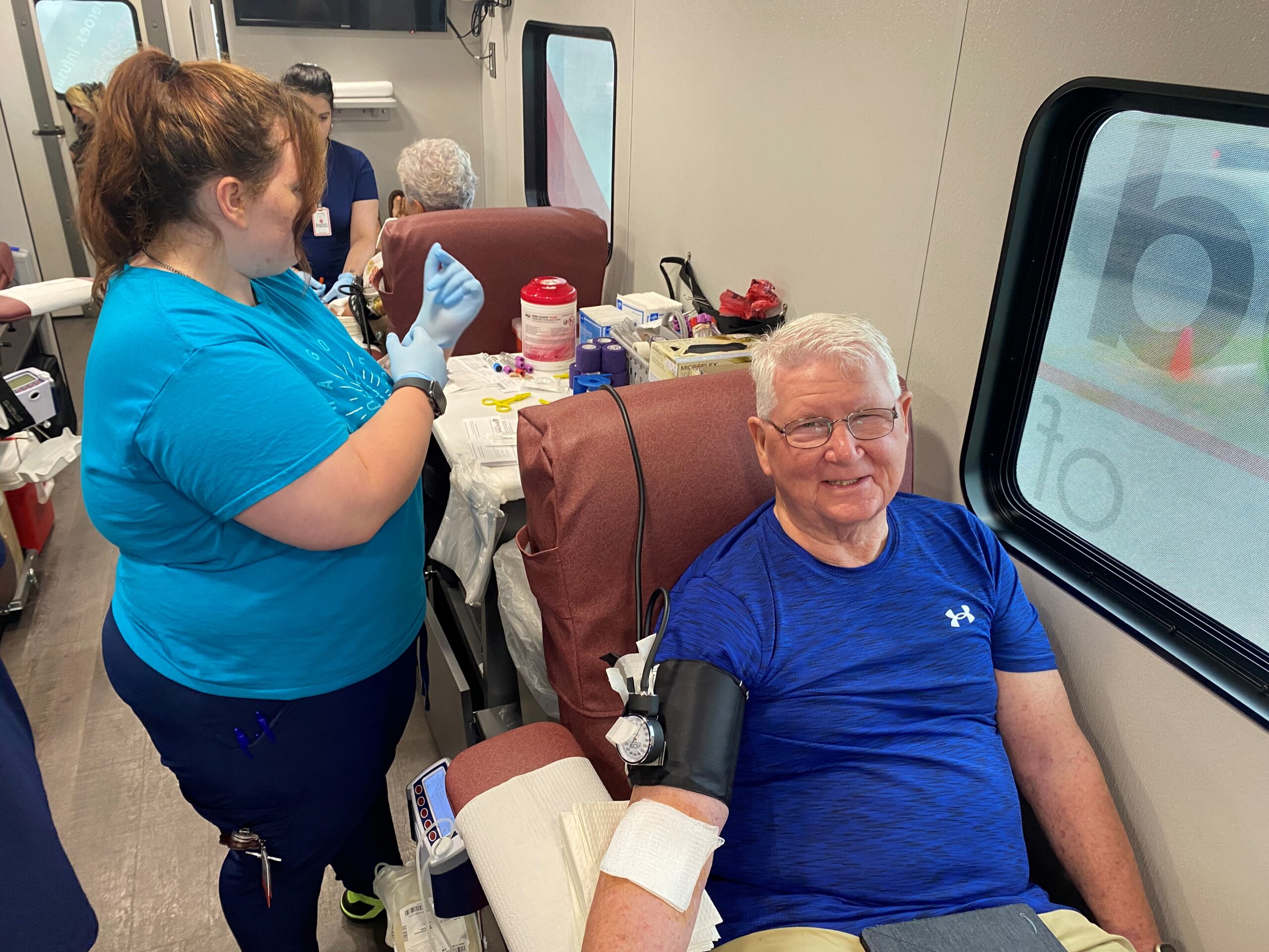 For Edgar Johnson, today’s blood drive was the first date was worked out for him after some previous setbacks. He donated with Blood Collection Tech Ava Pembroke.