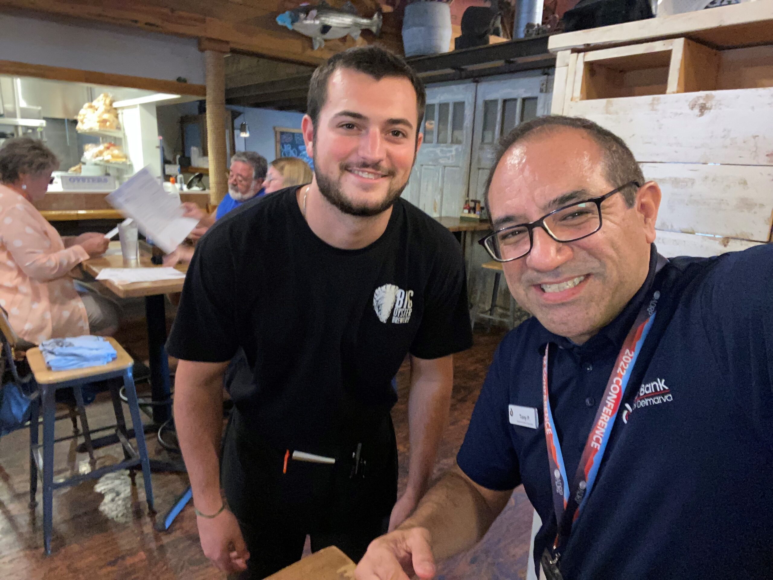 Blood Bank of Delmarva Account Manager Ralph Groves hopes blood drive coordinator Shayne Blankenship keeps doing whatever he is doing to make this blood drive successful consistently. Shayne is the manager at Big Oyster Brewery.