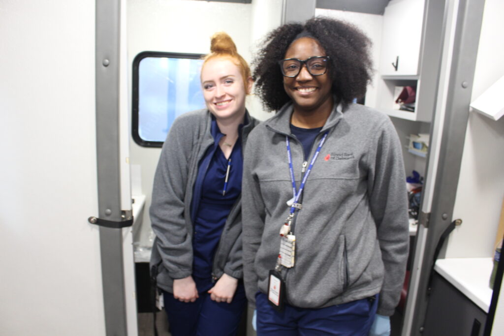 Fellow whole blood donors Stephanie Mergler and Donna Kellam agreed with the concept of asking everyone to chip in and help avoid blood shortages.