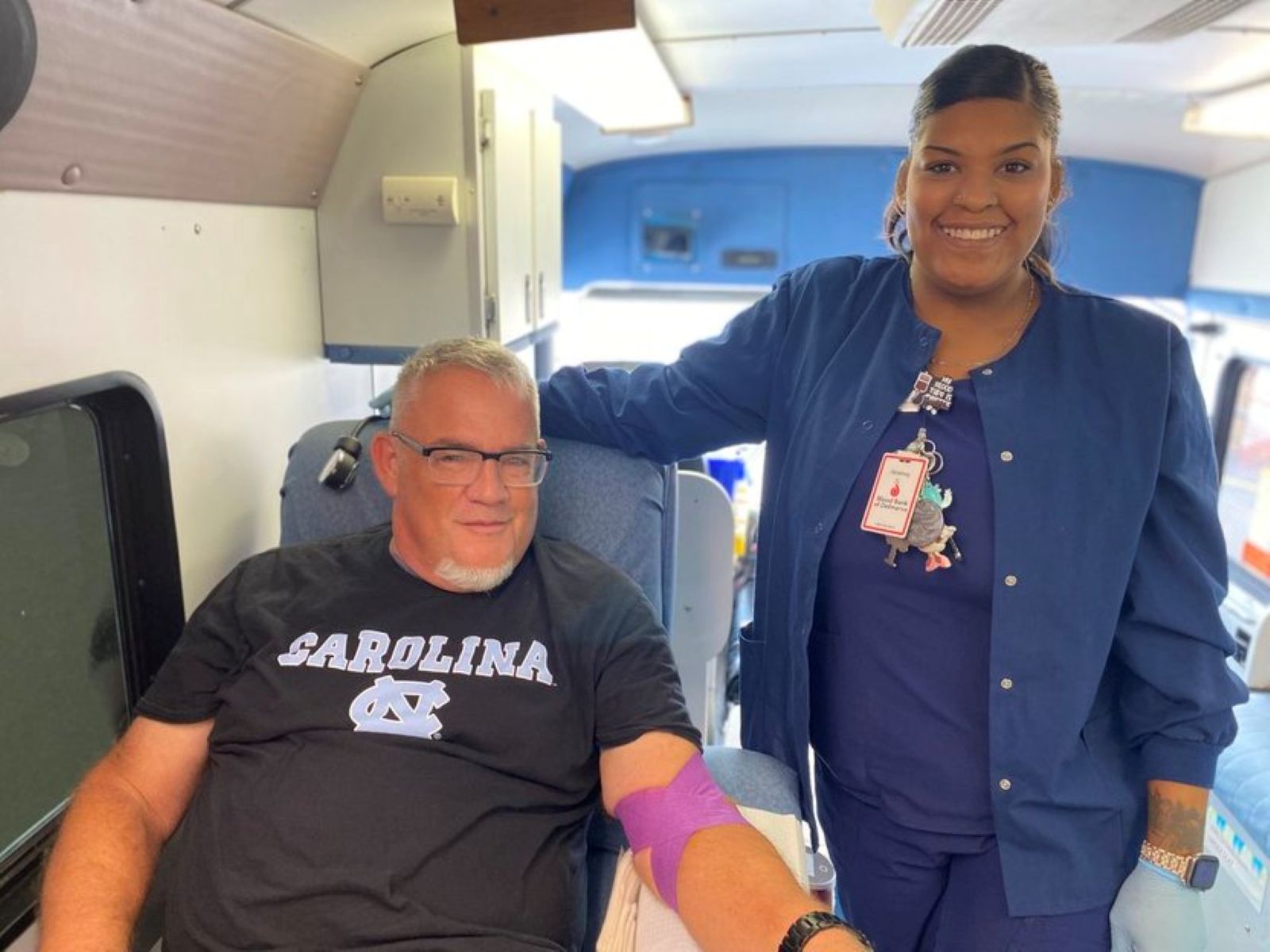 DOVER, DE – Blood Bank of Delmarva (BBD) and Dover Motor Speedway hosted more than 40 donors at the 20th annual 9/11 memorial blood drive on Thursday, September 11. After donating, participants had the rare chance to drive the “Monster Mile,” Dover’s legendary racetrack. Whole blood donor Wayne Shockey could not resist, taking his candy apple red, 1967 Pontiac GTO for a spin after donating with BBD Collections Supervisor Chelsea Akers and her mobile team.