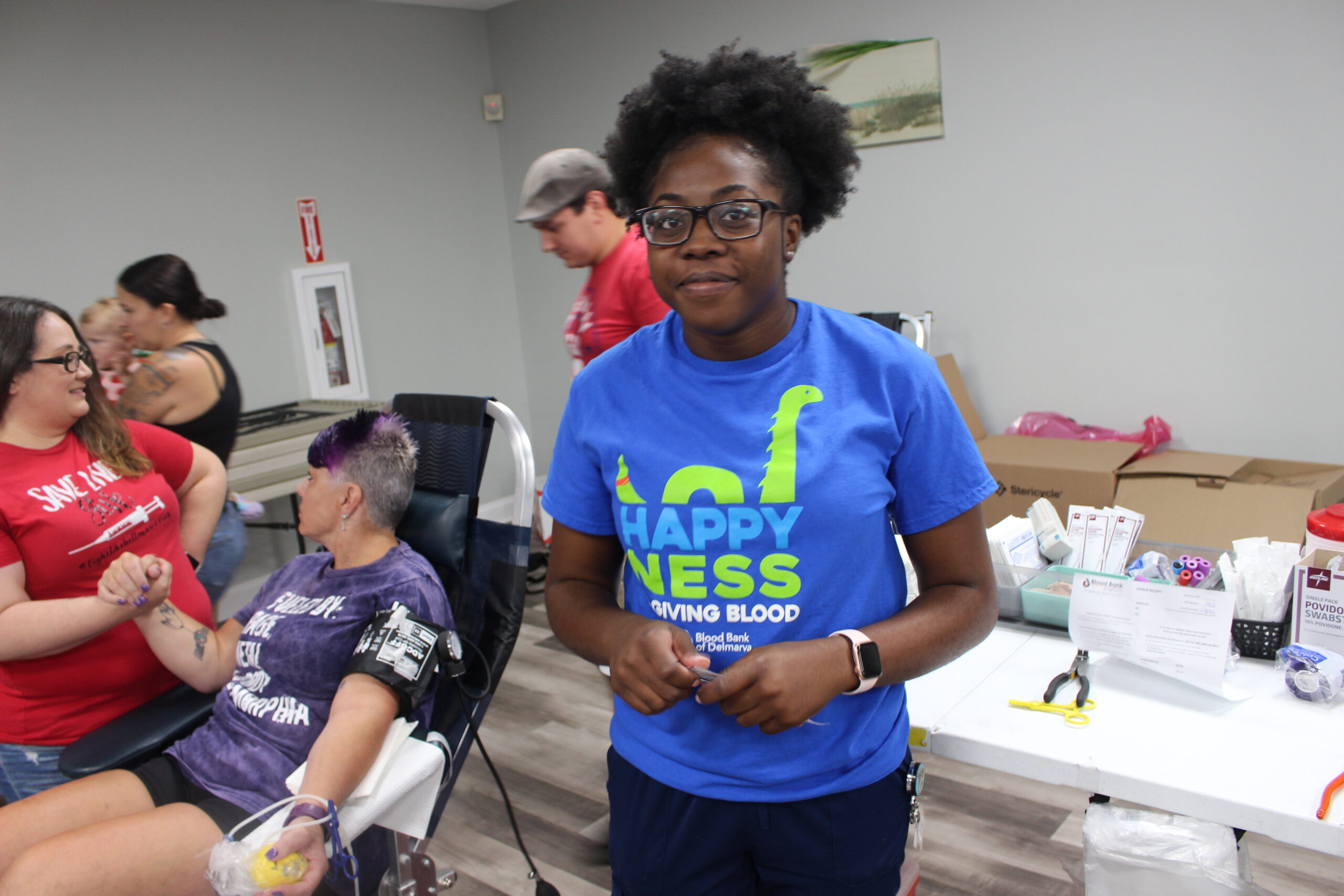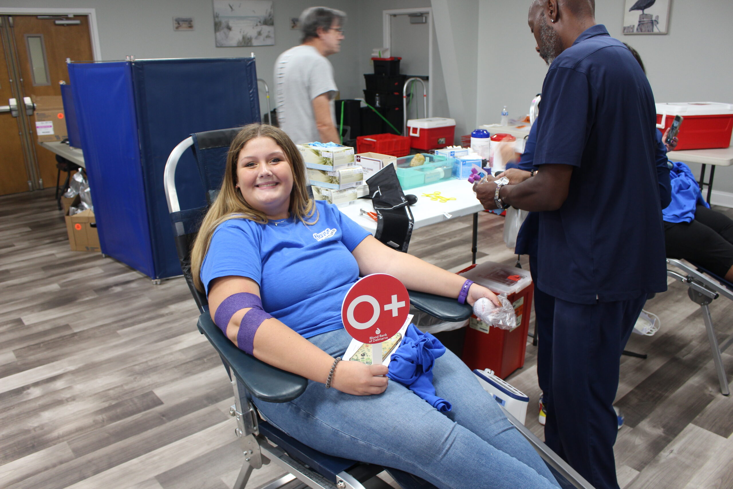 BBD VP of Business Development and Donor Experience Emily Cunningham worked at the blood drive, and she was impressed with the strong community showing. She too thanked donors and staff for making this a success, including Director Nicole Pineault, Account Manager Mary Moore and Communications Specialist Tony Prado as well as Jesse, mascot Delmar the Bloodhound, Bloodmobile Driver Jordan Singletary and Blood Collection Techs Adrea Haughton, Mary Adkins, Akyra Boswell, Jessica Mendez and Toni Ruggiero.