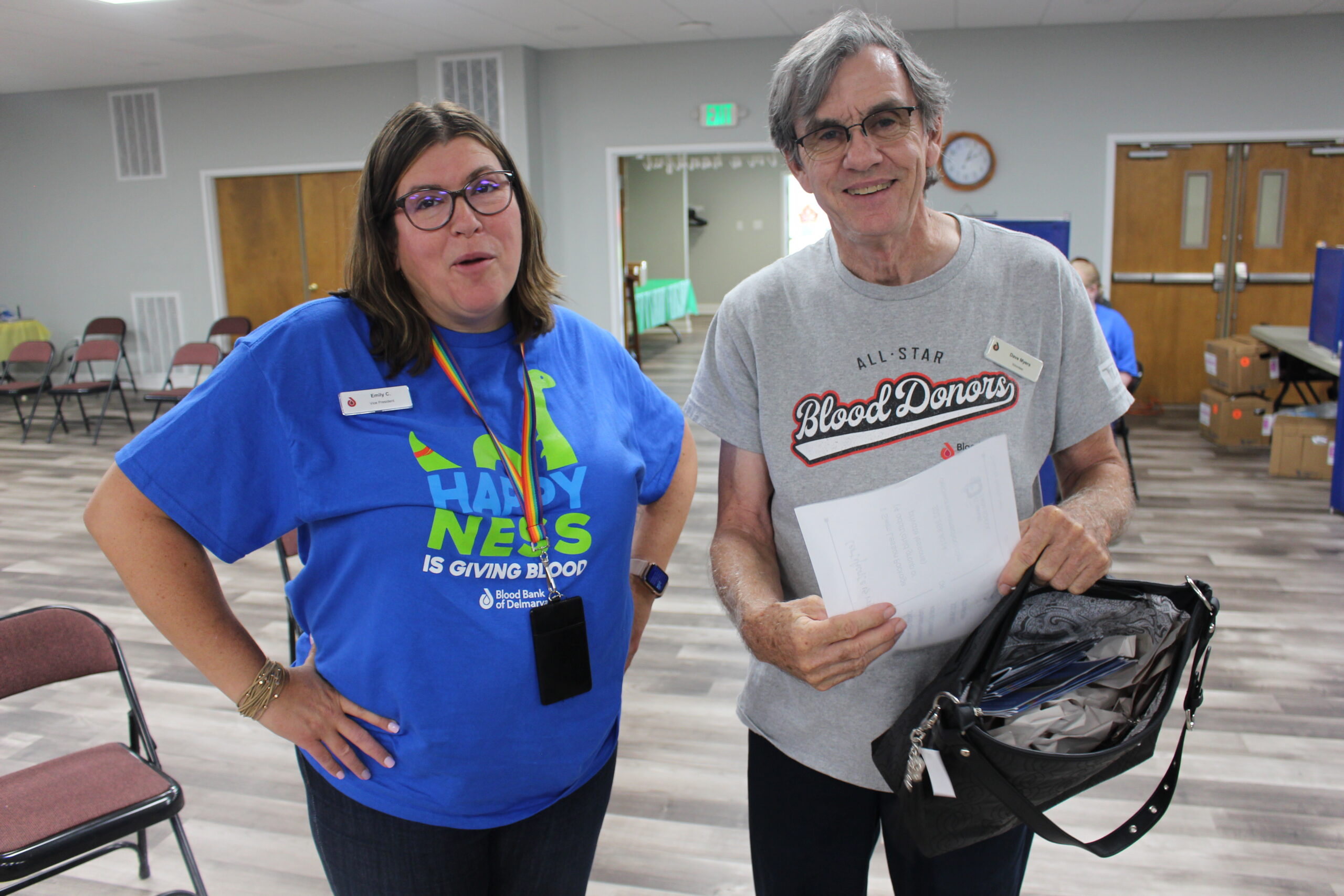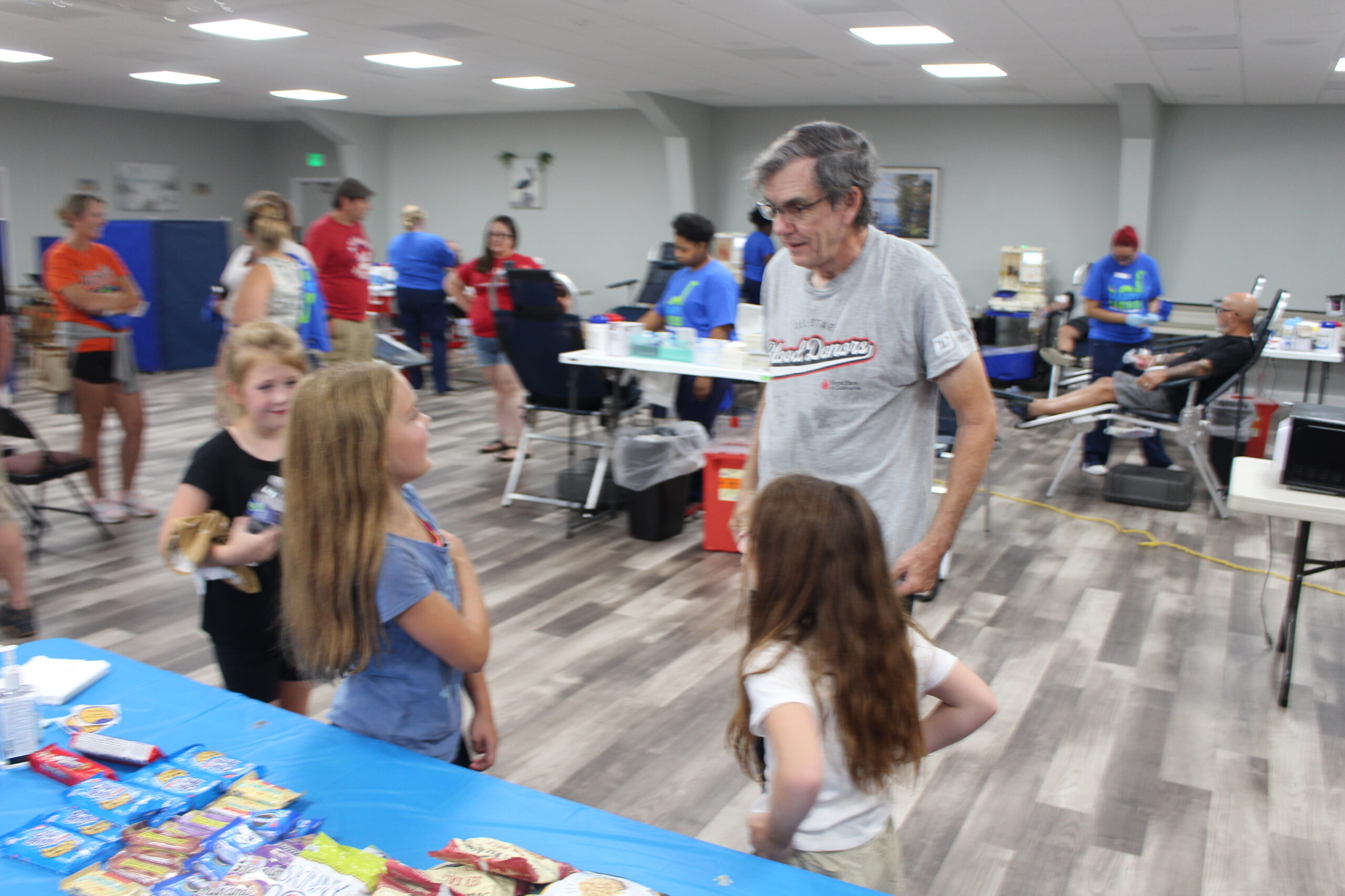 Emily also personally thanked volunteer Dave Myers for all of his help, including organizing coolers with blood bags and test tubes and showing magic card tricks to the children at the event. Dave is the man.