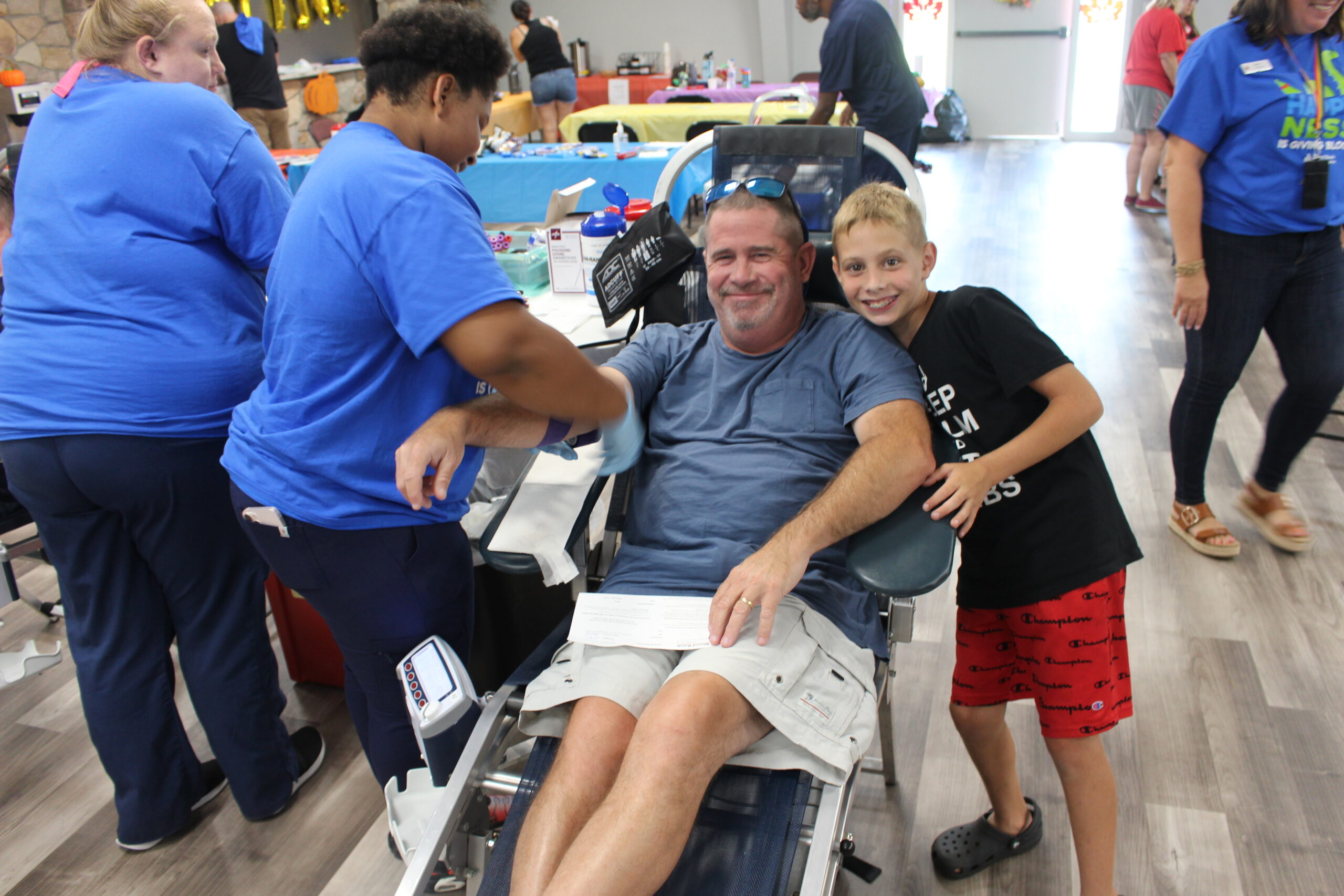 Jason Painter and Shane Simmons, parents of Maverick Ford Painter, booked 60 donors, and that translated into 50 whole blood sticks and six double red cell donations. That was good for a whopping total of 62 red cell units, Supervisor, Collections Jesse Latham said. He also pointed out that there were just four deferrals and no QNS (quantity not sufficient).