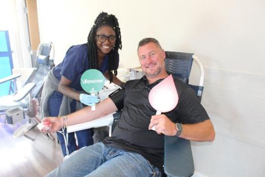 Ray Petkevis donated at the In Honor of New Castle County Police Lt. Joseph Szczerba Blood Drive today, and he expressed an interest in working with Blood Bank of Delmarva Account Manager Mary Moore to raise awareness of the need for blood. Ray works in the local Real Estate community.