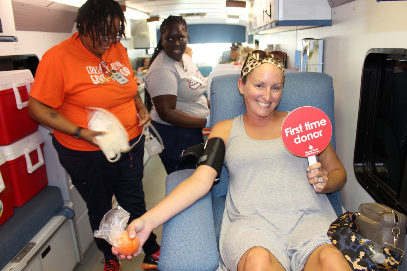 The blood drive celebrated a Cecil Couny, Md. family that was helped by the BBD mission to provide lifesaving blood products to the Delmarva community. After Samantha Handy recently gave birth to her youngest daughter, Luci, they both needed lifesaving blood transfusions. Samantha and her husband, Shane, were at the blood drive with Luci.