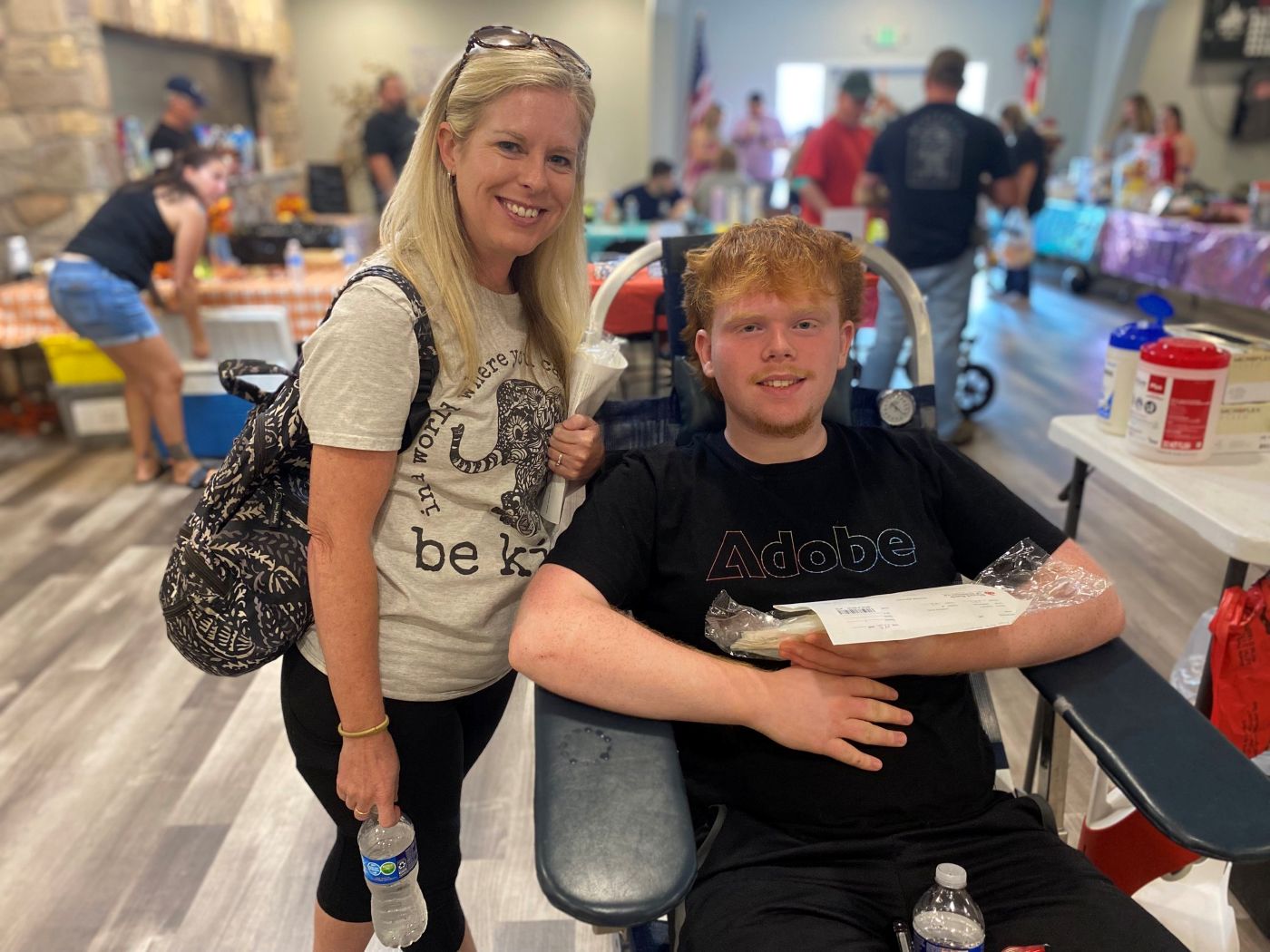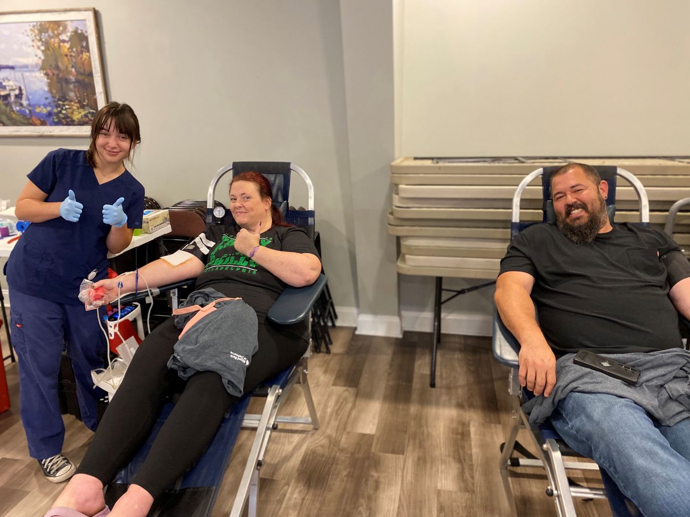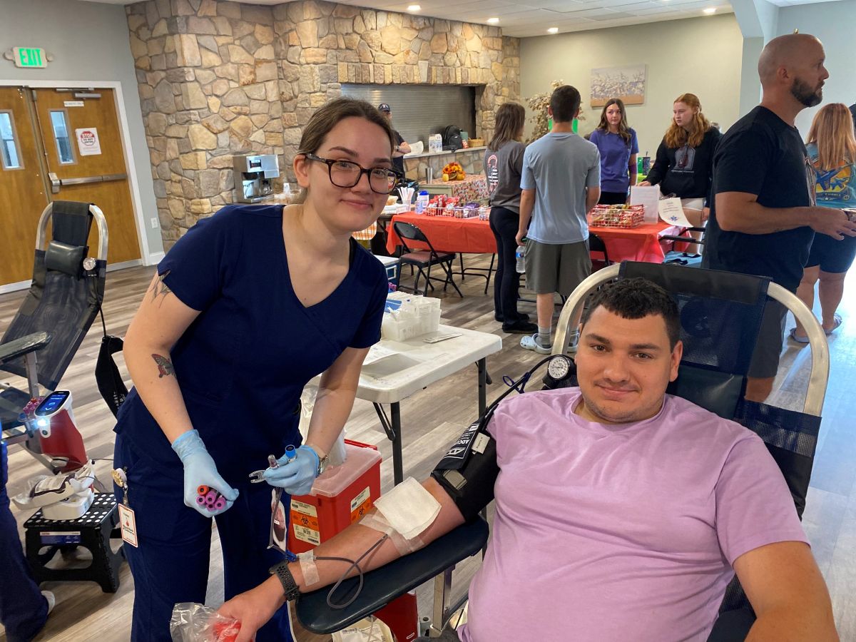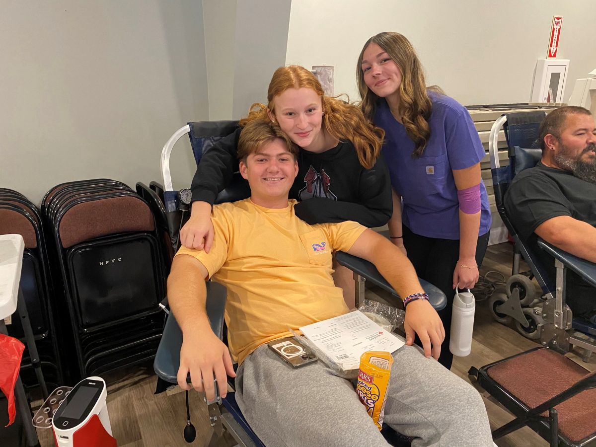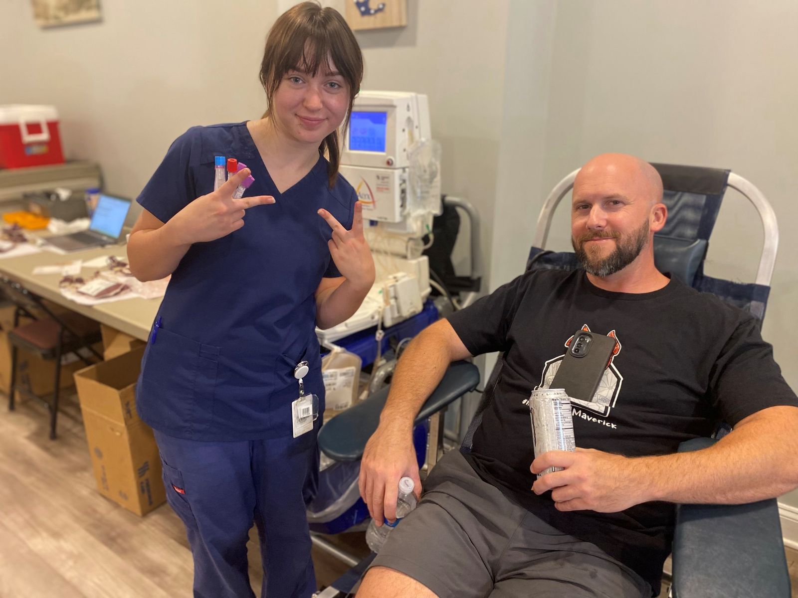 Per tradition, Jason Painter donated double red cells with a Monster energy drink in hand. Shane donated for the first time after years of encouraging others to give; her mother, Kathleen Simmons, also donated, following Maverick’s other grandmother, Bobbi Edwards, who traditionally donates first. Maverick’s big sister Hailey Boulden also signed up to donate, bringing first-time donors Tucker Rando and Alyssa Dill with her.