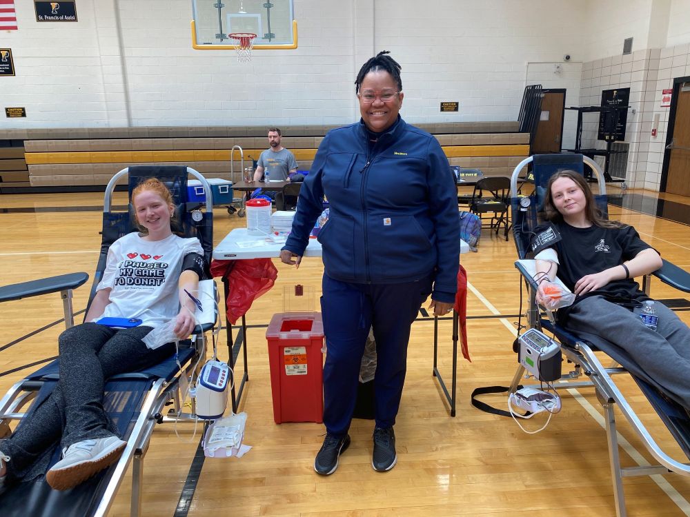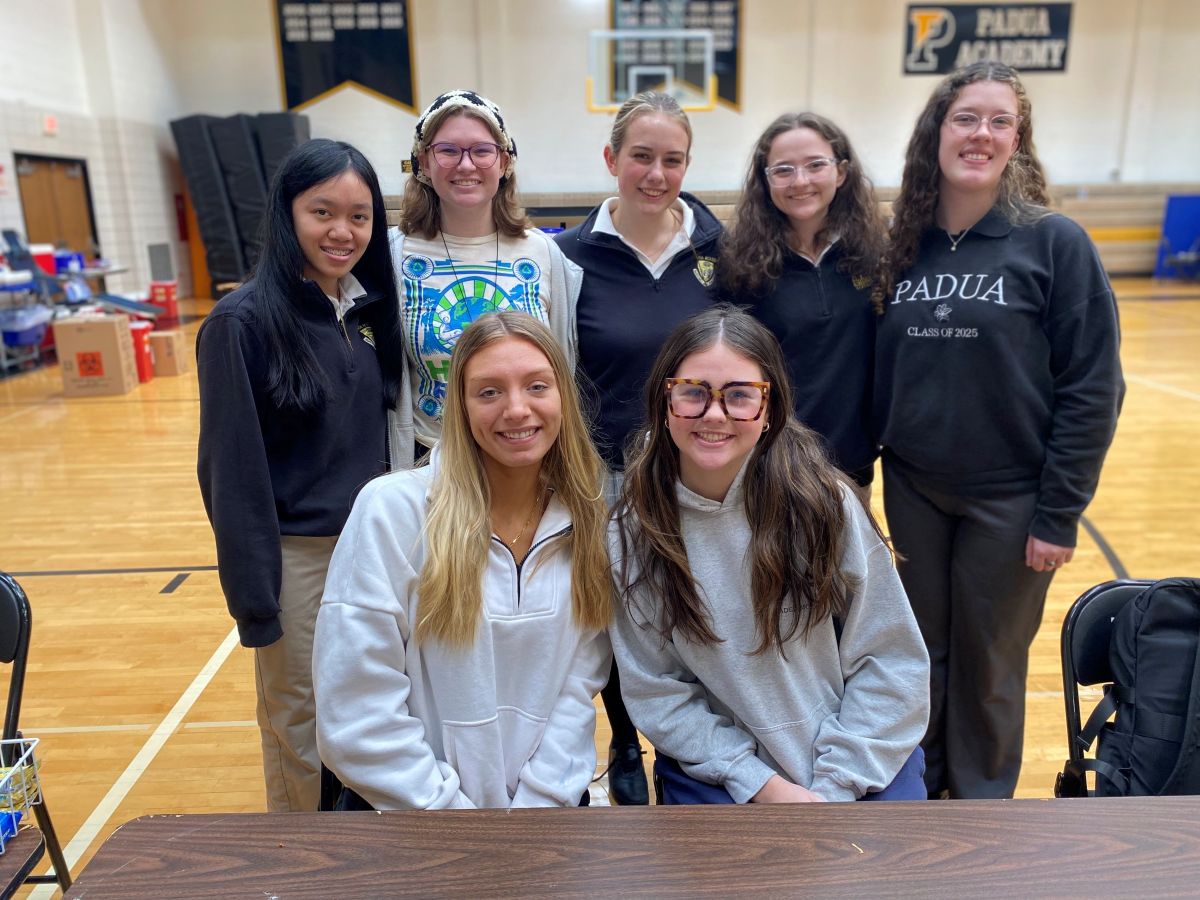 At Padua Academy, members of the National Honor Society (NHS) organized a successful blood drive on Tuesday, March 11, where they booked a total of 54 appointments and collected 39 units of blood. NHS students traditionally run this annual event, taking on various roles such as recruiting donors, volunteering in the café, and donating blood themselves.