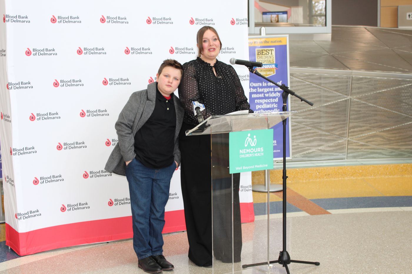 “I just want to add that it’s fitting that National Blood Donor Month takes place in January, because it was a January a few years ago when Caleb received his last transfusion of platelets right here at the amazing Nemours Children’s Hospital,” she said. “It was amazing to see the color come back into his face and to see our little boy be reinfused with energy again. It’s hard for me to describe, really. But take my word for it; blood donors saved my son’s life. There are no words I can say to express how we and all of Caleb’s siblings feel about you ensuring he’s still here with us today. And thank you, Nemours.”