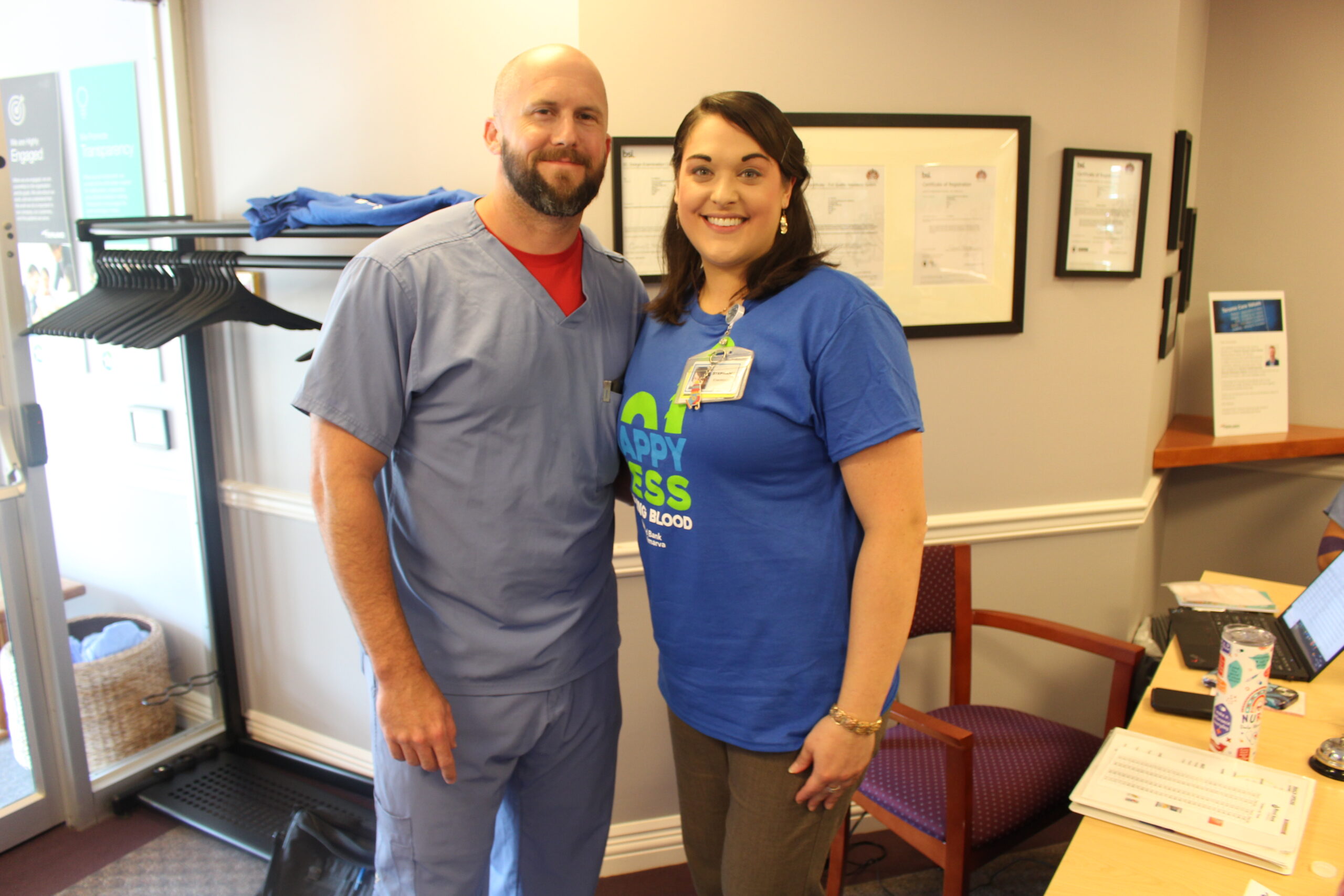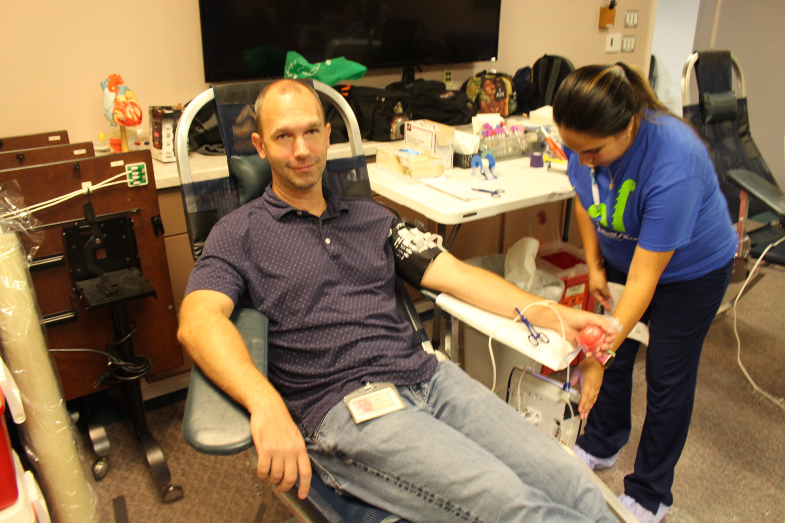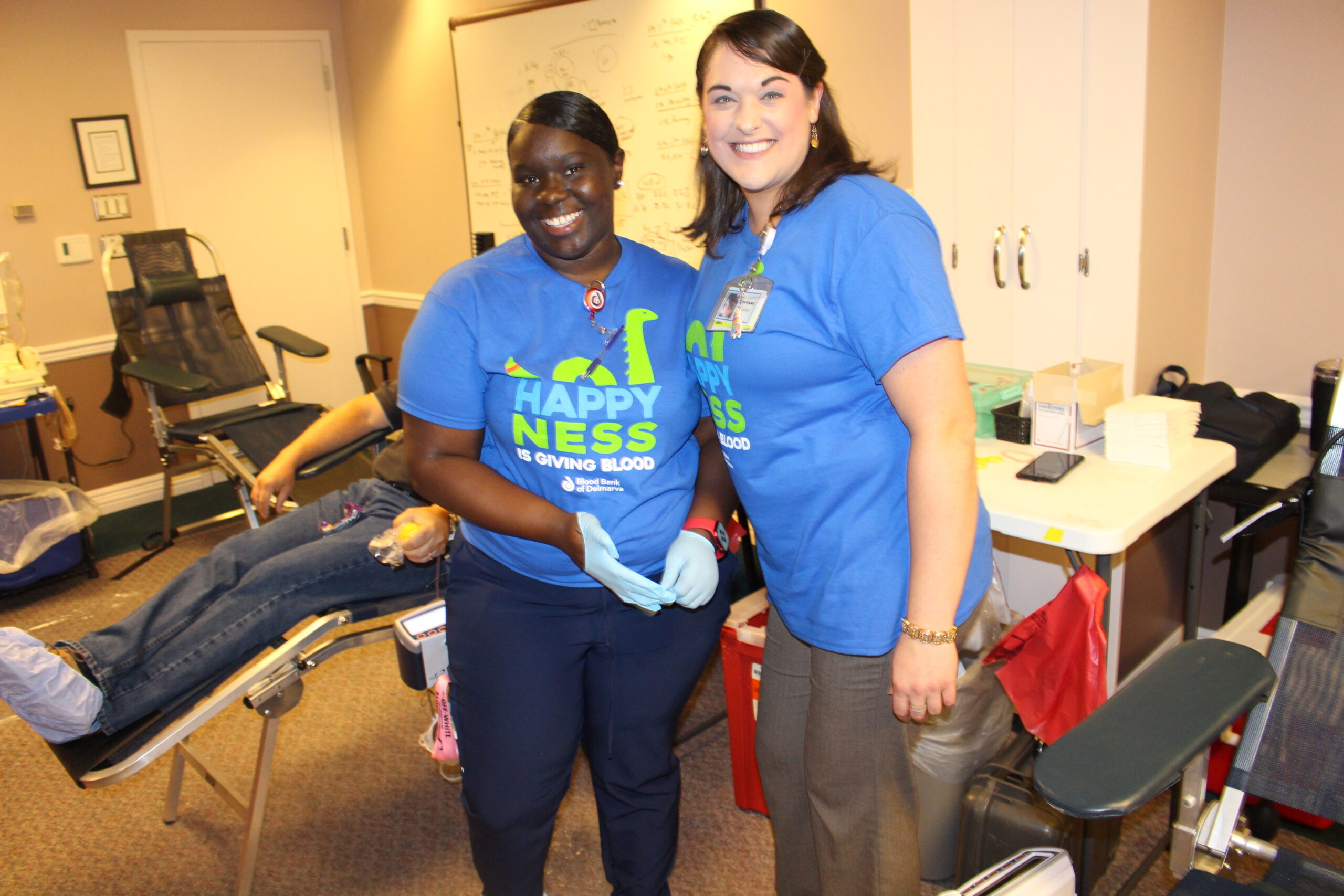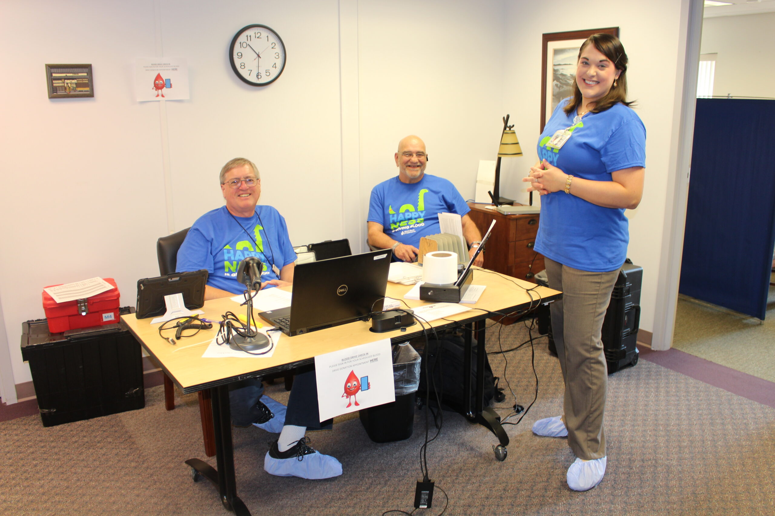 Several donors were also inspired by Terumo tech Jason Painter’s son, Maverick, to donate. Maverick needed eight transfusions after he was born September 3, 2018. In addition, all Terumo’s received this year’s official Maverick T-shirts, the Loch Ness monster styled “Happy Ness is donating blood.” That included Jason’s friends, Evan Carson and Noellle Thompson, among others.