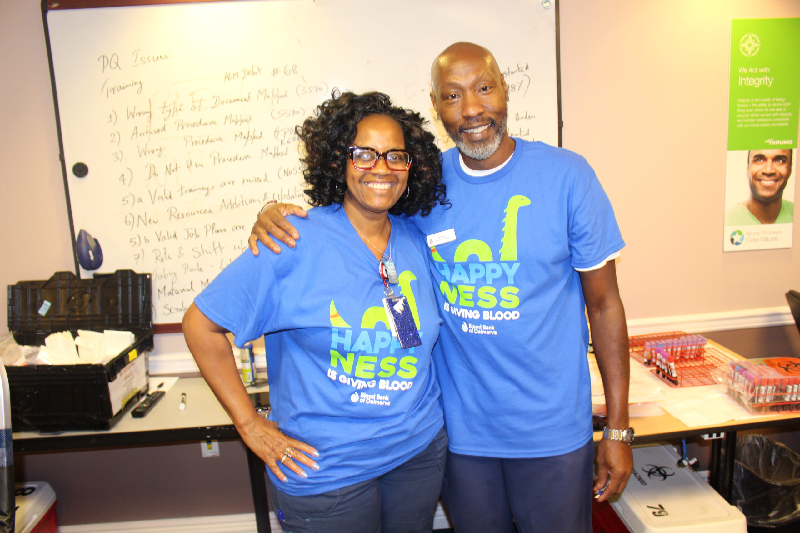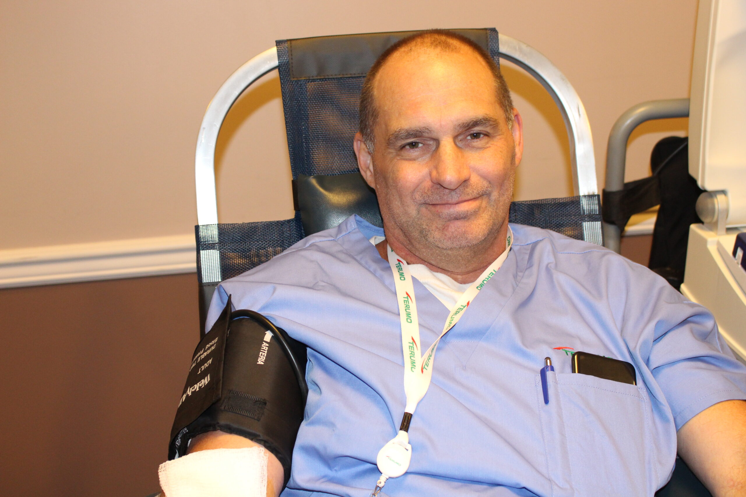 Terumo’s quarterly blood drive on Thursday was the autumn edition of the quarterly blood drive that Terumo Occupational Health Nurse Stephanie Eskridge brought back in the summer. Stephanie worked with BBD Account Manager Mary Moore, whose territory includes Cecil County, to have BBD return to Terumo after a hiatus of a few years.