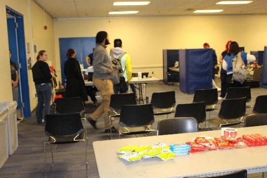 Meanwhile, Maci and Jacqueline staffed a table in the main hallway of the Perkins Student Center, where they continued to recruit donors.