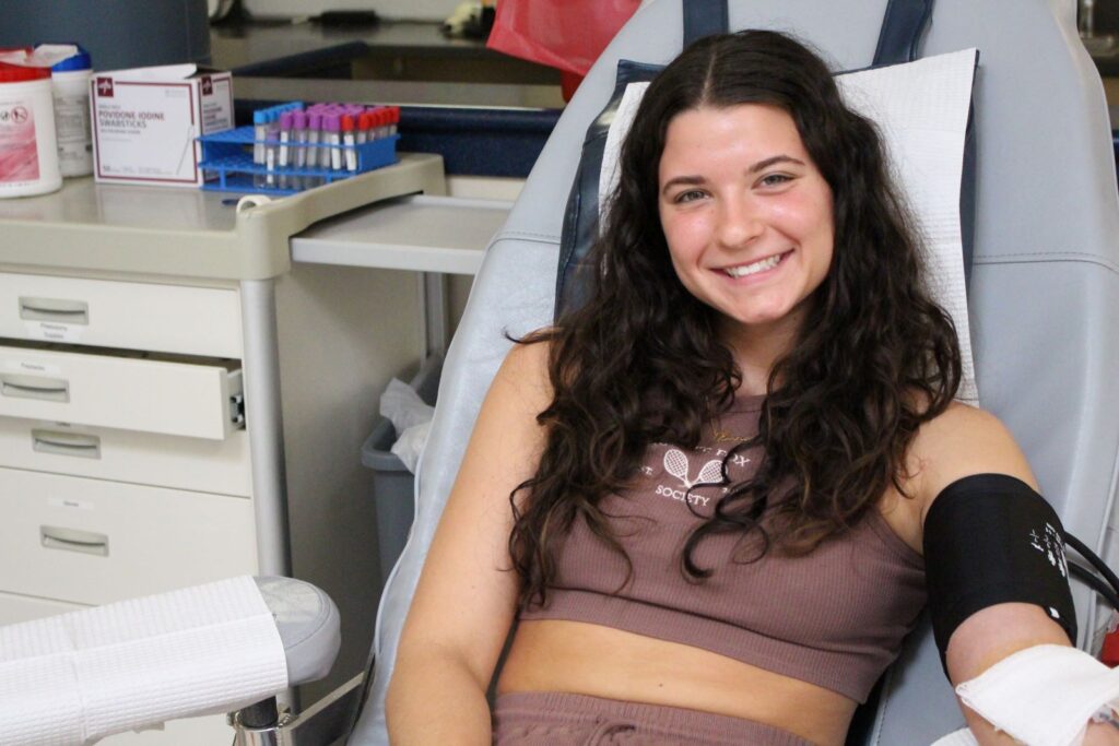 “I needed to volunteer for my sorority, Alpha Xi Delta,” she said. “And, my professor is very passionate about blood banking, and she inspired me to do it.”