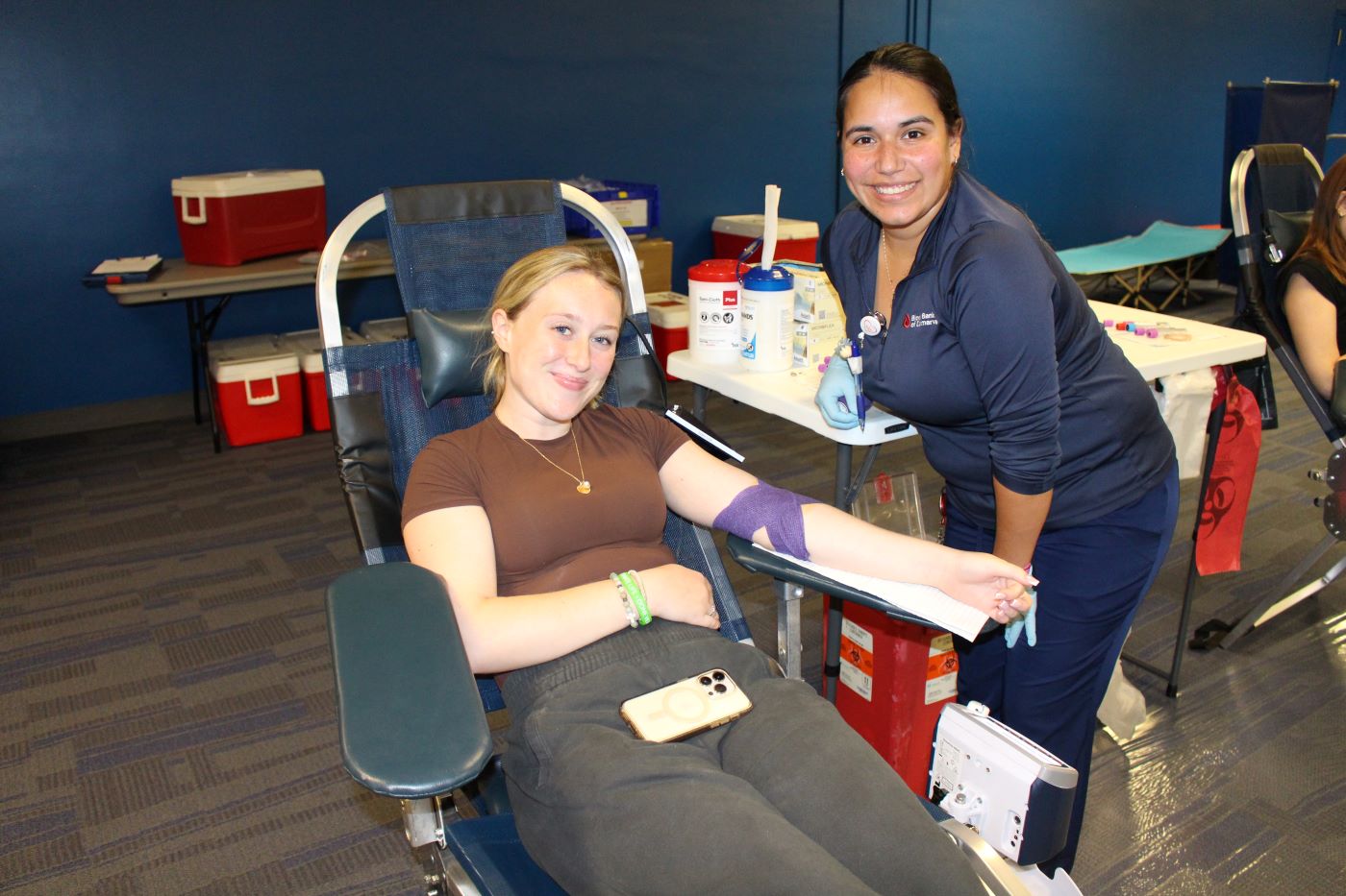 Leana Griffin, sophomore mechanical engineering major, donated for the first time, and finally overcame her anxiety with needles.