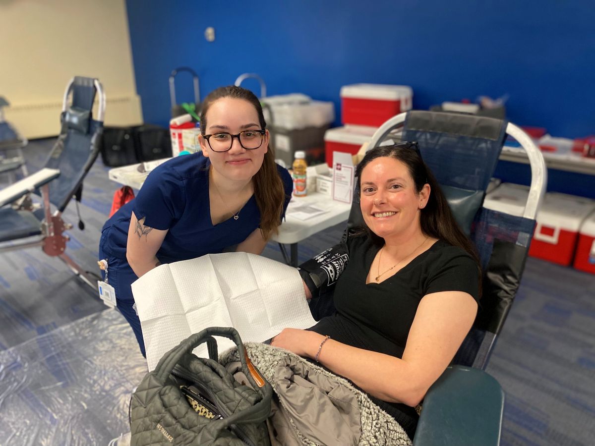In addition to students, the voluntary donor blood drive, per tradition, attracted faculty and staff from UD, including strength and conditioning coach Katie Bertolet and Staci Lewis, who works in Human Resources at the UD College of Education and Human Development.
