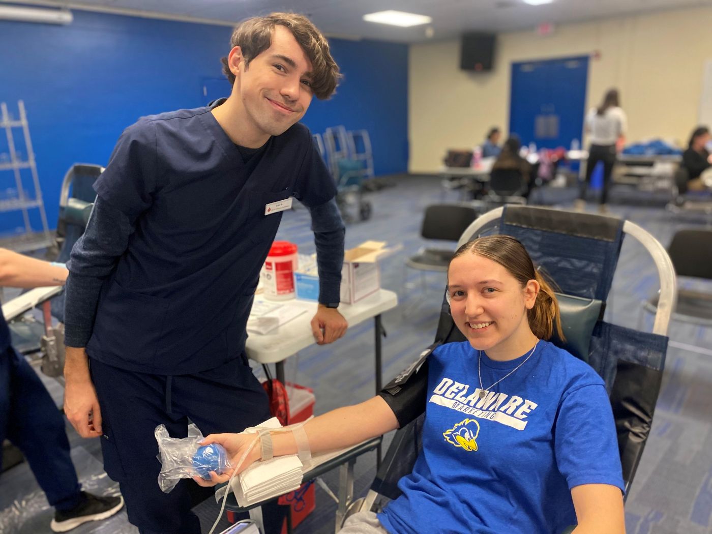 The blood drive also had universal appeal, drawing graduate, mechanical engineering students Gianni Saracino and Tyler Meyer, who have donated at UD blood drives in the past; Erin Danese, a sophomore, business major; and Lilly McAroy, a junior, media communication major who donated for the first time.