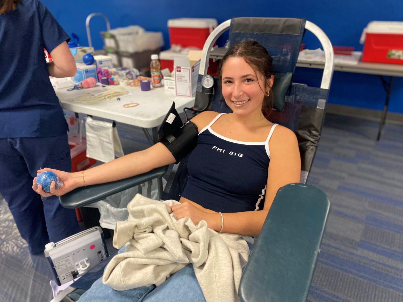 The huge draw was due in large part to the dedicated, lifesaving efforts of blood drive coordinator Kyle Tubian a junior kinesiology and pre-med major and a member of Alpha Epsilon Pi (AEPi) Fraternity, who organized this blood drive in partnership with BBD Account Manager Gia Rivera. This was Tubian’s fifth blood drive since last school year, and he enjoys volunteering within the medical field.
